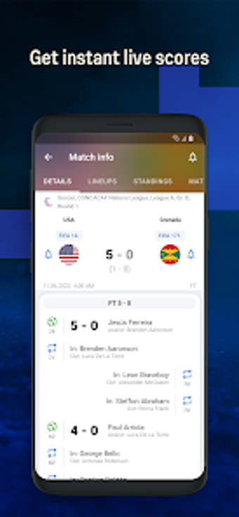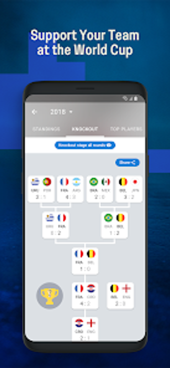 تطبيق Sofascore هو بنك المعلومات الفوري الذي يعرض تفاصيل البطولة الحيوية مثل النتائج المباشرة والتنبؤات والنتائج وإحصائيات اللاعب والمباراة وما إلى ذلك. في فرقك المفضلة وشجعهم. علاوة على ذلك ، سيستمتع المشجعون أيضًا ببيانات تاريخ كأس العالم الحصرية ، مما يتيح لك تصفح أرشيف المباريات الأسطورية.